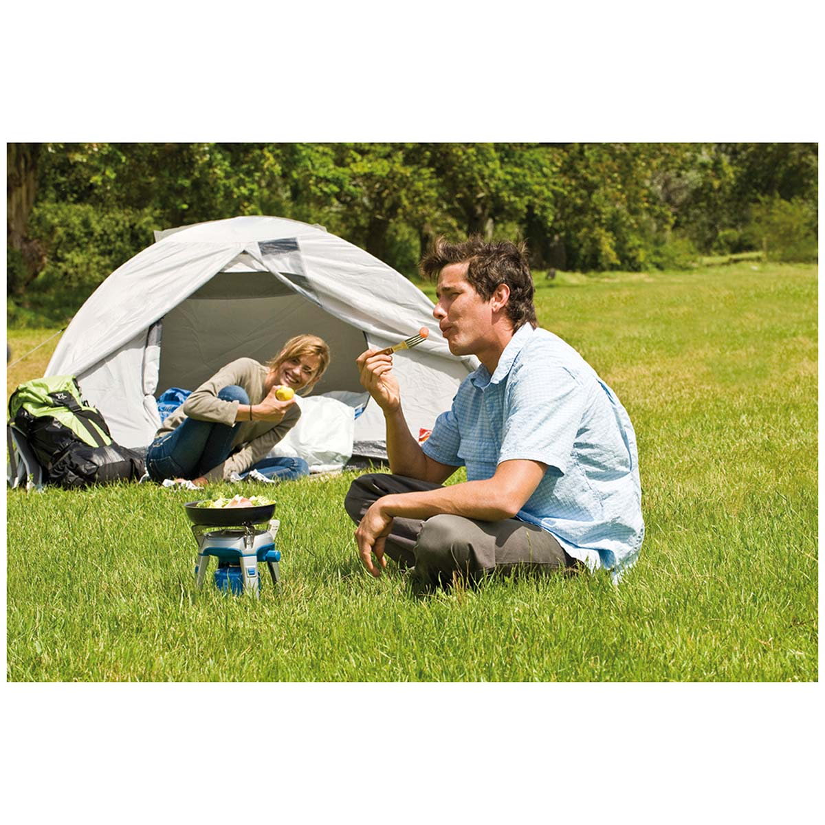 Een uiterst stabiel kooktoestel. Dit kooktoestel heeft 4 geïntegreerde en afneembare poten en een extra brede pansteun voor het verwarmen van zwaardere/grotere pannen. Beschikt over een regelbare brander van 2600 Watt. Hiermee bedraagt de kooktijd 3 minuten en 10 seconden voor 1 liter water. Kan worden gebruikt in combinatie met een gascartouche CV-300 Plus of CV-470 Plus. De afneembare pootjes zorgen voor een eenvoudige en compacte opslag en het piëzo-systeem zorgt voor een probleemloze ontsteking zonder gebruik van lucifers. Wordt geleverd met een handige draagtas waarin zowel het kooktoestel als een gascartouche in opgeborgen kan worden.