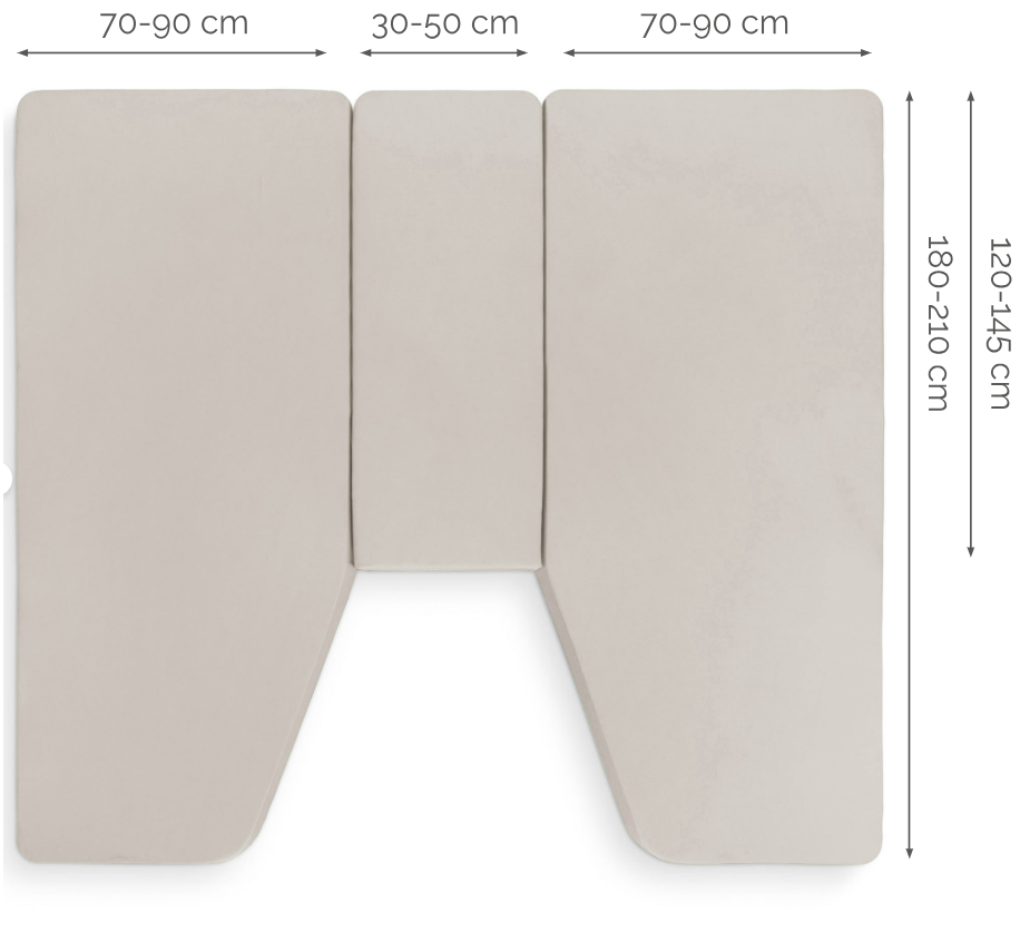 Afmetingen: 2×70/90 x 180/210 + 30/50 x 120/145 cm