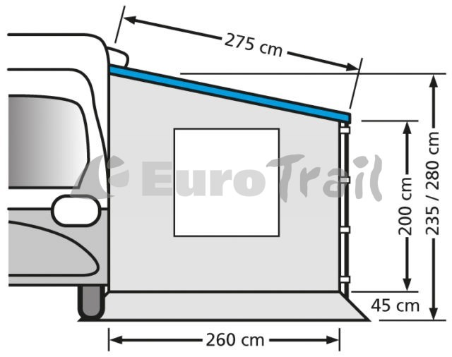 260×200/230 : Uitval 275cm, Onderkant luifel 235-280cm
